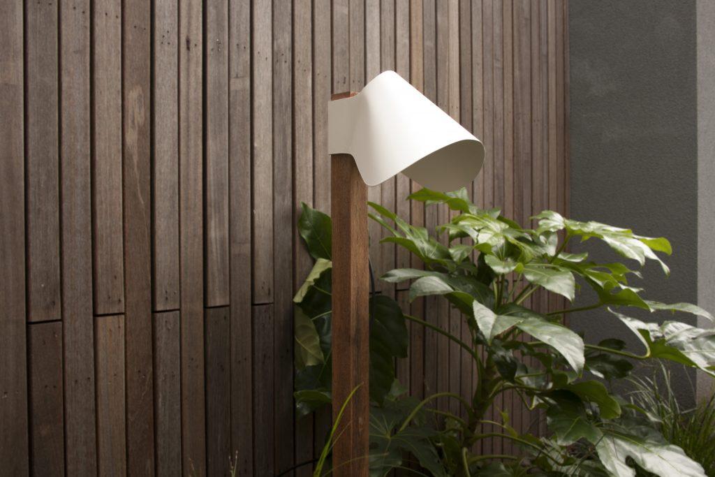 Cornette The starting point for this outdoor design lamp were the existing poles in a garden. The assignment was to create a lamp that could be hung on these poles to give them a new life. During the process of folding steel plates we came up with a shape that reminded us of a nun’s headwear, the Cornette. This unique shape can be installed around a wooden pole in different ways and directions. It is also possible to attach the lamp to a wall. The Cornette lights up your garden in a very playful way!